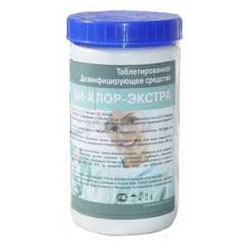 Таблетки и гранулы белого цвета с характерным запахом хлора или отдушки. Вес таблетки (0,85±0,05, 1,7 ± 0,09, 2,25±0,12, 3,4 ± 0,18, 6,8 ± 0,32) с различным содержанием активного хлора от 375 до 3000 мг. При растворении одной таблетки (3,4г) выделяется 1.52 ± 0.12г активного хлора.