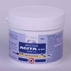 Для приготовления рабочего раствора в отдельной емкости растворяют 100 г гранул Агиты 10 WG в 80 мл воды и тщательно размешивают для получения однородной суспензии. Приготовленного рабочего раствора достаточно для обработки помещений с площадью пола 40 м2. Раствор наносят кистью на поверхность полосками размером 10х30 см. Следует наносить не менее 8 полосок для обработки помещений с площадью пола 40 м2. При использовании инсектицидного средства Агита 10 WG, расфасованного в банки по 400 г, препарат смешивают с водой из расчета 400 г Агиты 10 WG на 320 мл воды и тщательно размешивают. Приготовленного рабочего раствора достаточно для обработки помещений с площадью пола 160 м2. Раствор наносят кистью на поверхность полосками размером 10х30 см. Следует наносить не менее 30 полосок для обработки помещений с площадью пола 160 м2. При отсутствии удобных поверхностей для нанесения раствора, при наличии деревянных, оштукатуренных и побеленных поверхностей или вследствие нежелательности нанесения средства непосредственно на стены и предметы интерьера раствор наносят на полоски картона или полиэтиленовой ленты и прикрепляют их к стенам или подвешивают к потолку. Срок инсектицидного действия Агиты 10 WG при нанесении мазков препарата на поверхность составляет 6 – 8 недель.